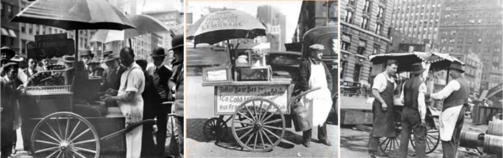 The answer to this question is also not completely clear. Hot dogs appeared with the first German immigrants in the late 1840’s. They ate sausages from butcher shops at home and at street fairs and festivals, as well as in beer gardens. The evidence shows that sausages were certainly being sold by street vendors in America by the 1860’s.