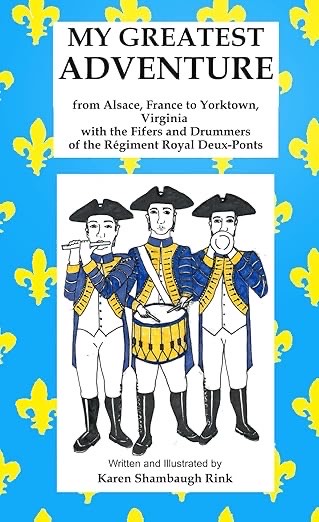 Palatinate Chapter member Karen Rink has written a book about 3 teen boys from Alsace, France, who joined the Régiment Royal Deux-Ponts in 1780, a French regiment that was stationed in Zweibrücken, Germany. The title is My Greatest Adventure: from Alsace, France to Yorktown, Virginia with the Fifers and Drummers of the Régiment Royal Deux-Ponts.
